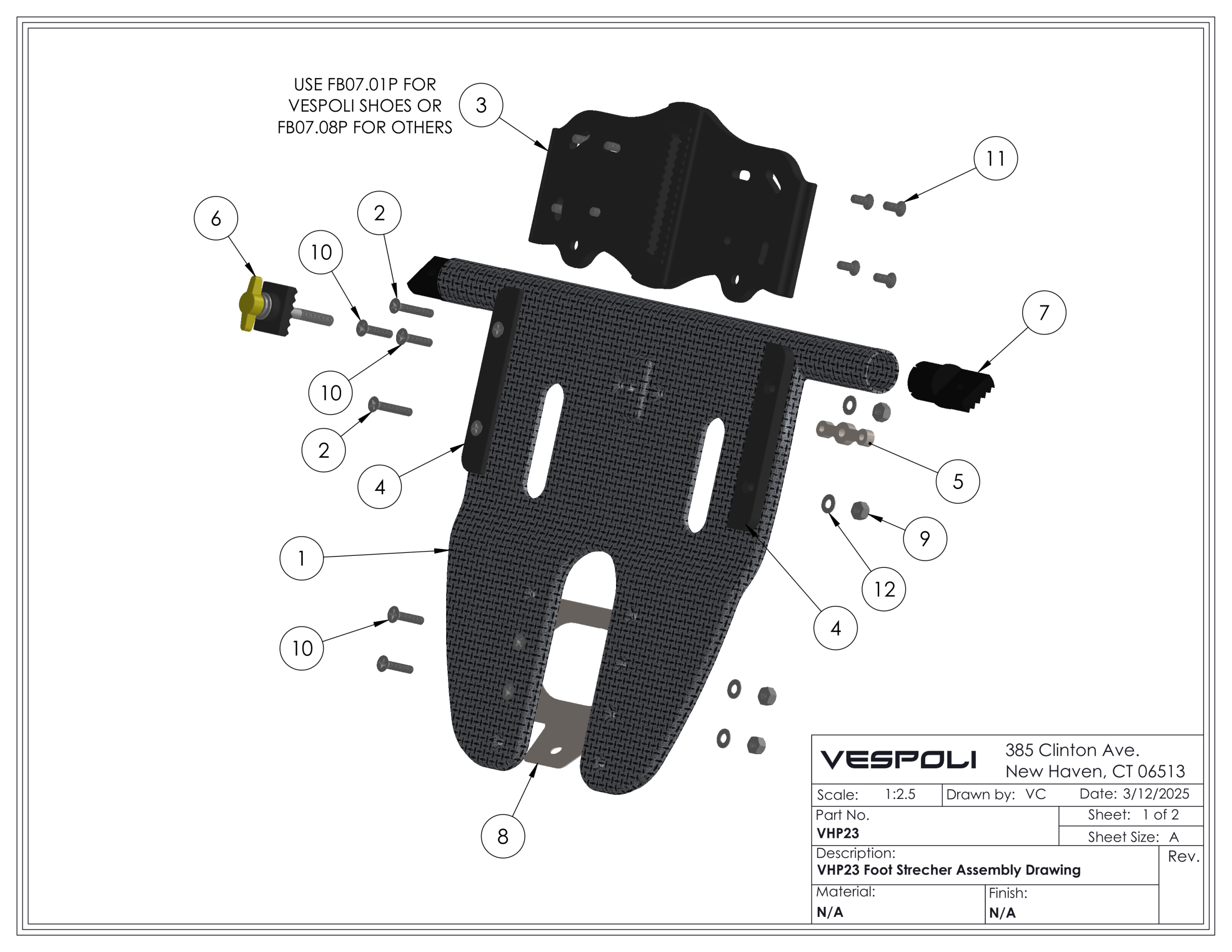This diagram shows how to assemble the VHP 23 footboard used in all VHP boats starting in 2023.