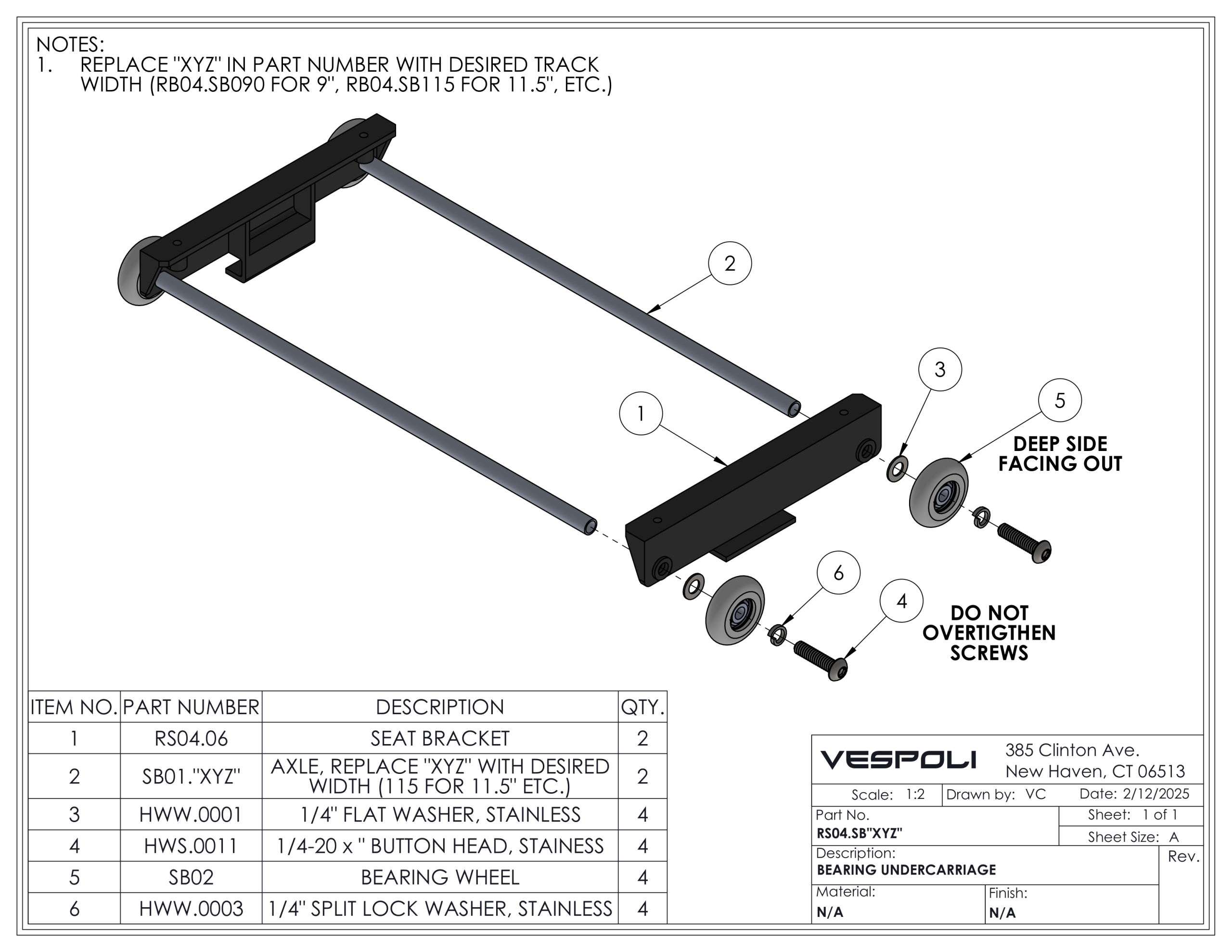 This diagram shows the proper assembly of the undercarriage used in all VHP boats.