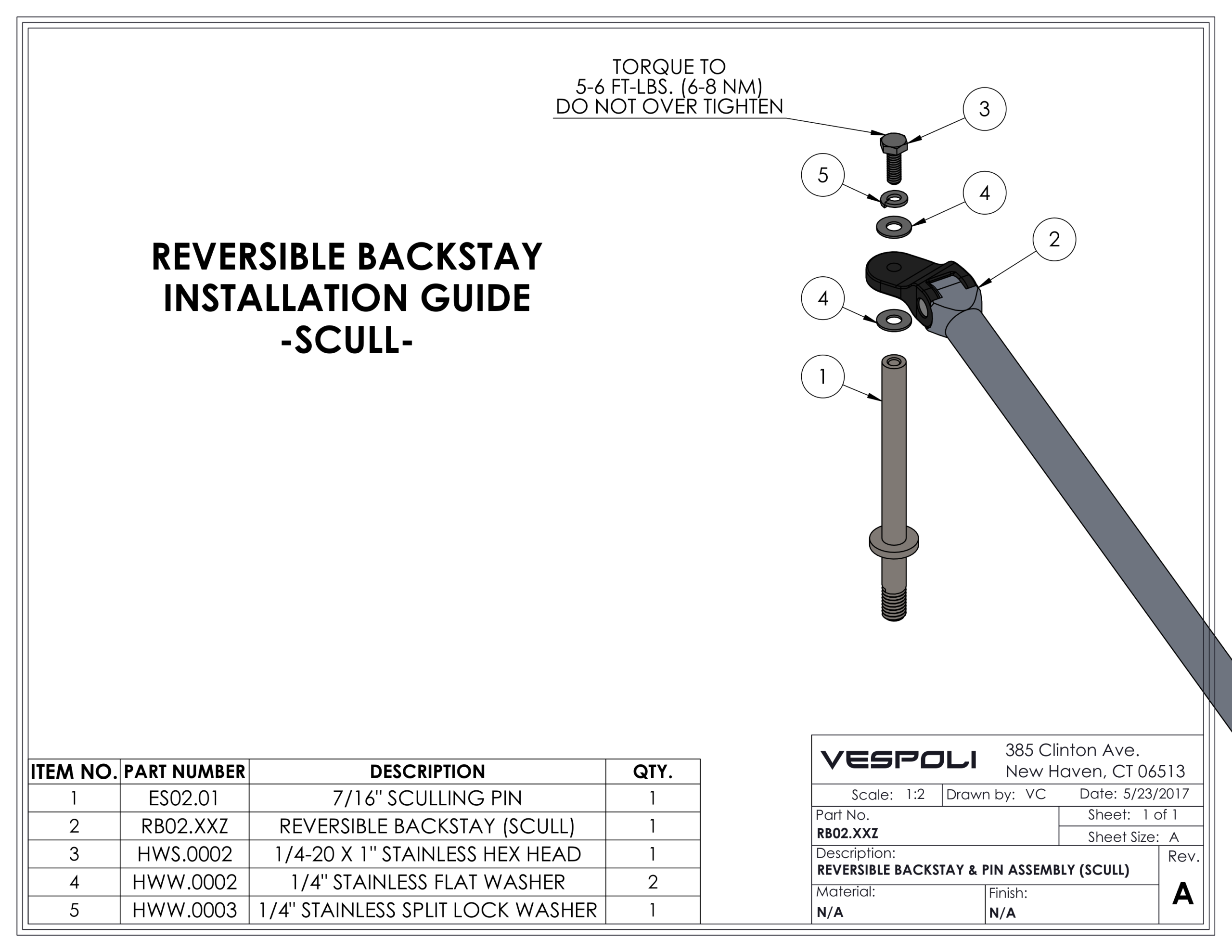 This diagram shows proper installation of the backstay featured in all scull riggers using stern mounts.